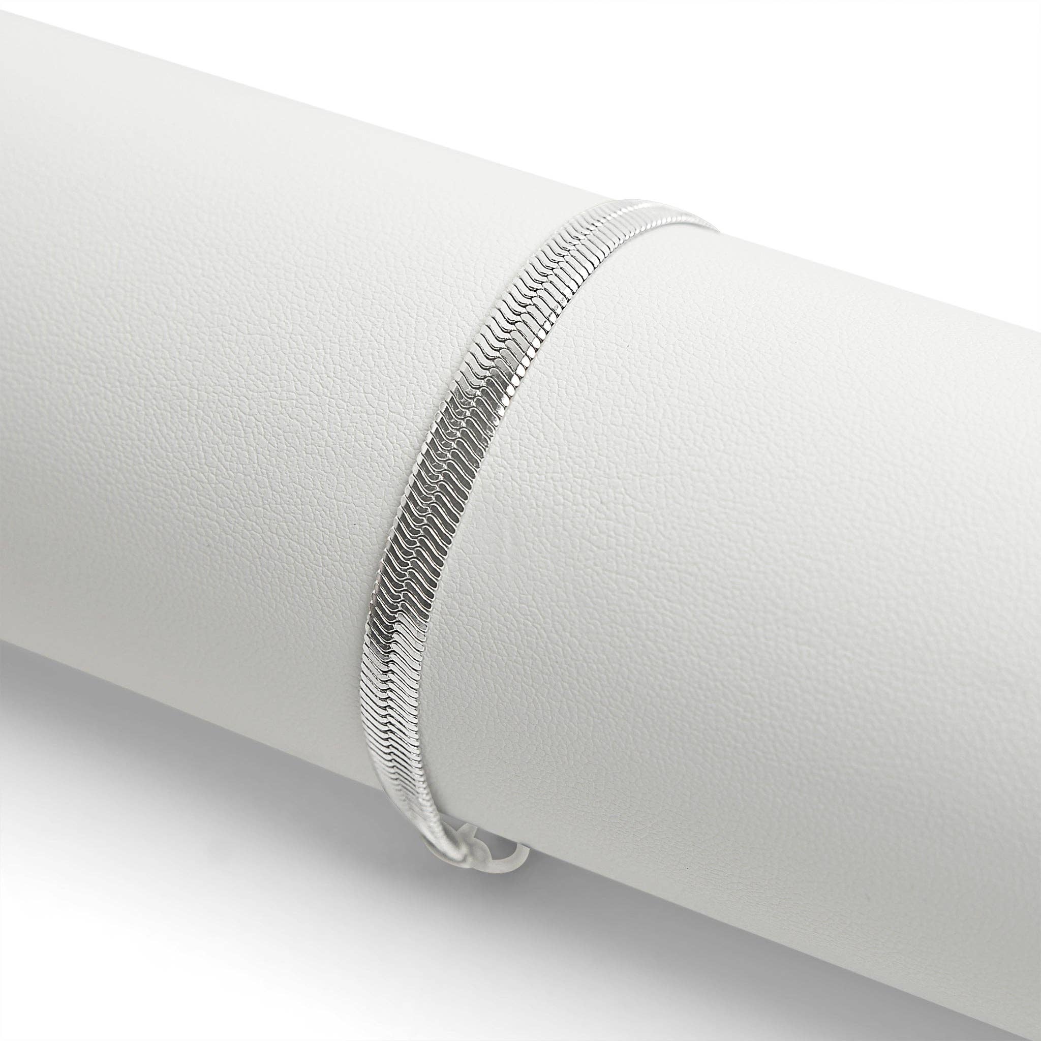This Herringbone Bracelet is crafted with exquisite herringbone links, finished with a lobster-claw clasp for security. Its elegant design and flat construction lets it rest smoothly against the body, while providing a stunning statement piece with any outfit. So don't miss out - grab yours today for an eye-catching extra touch!