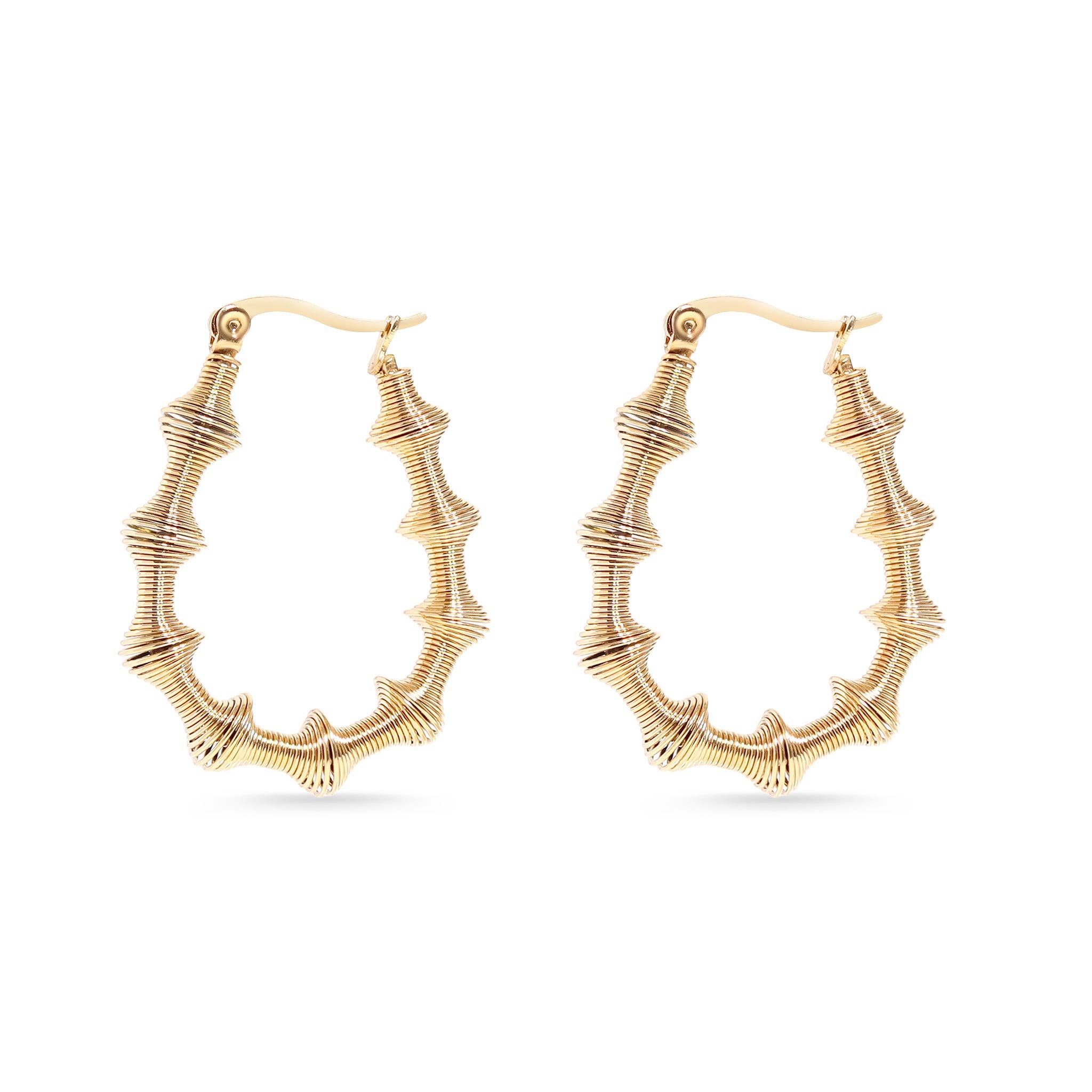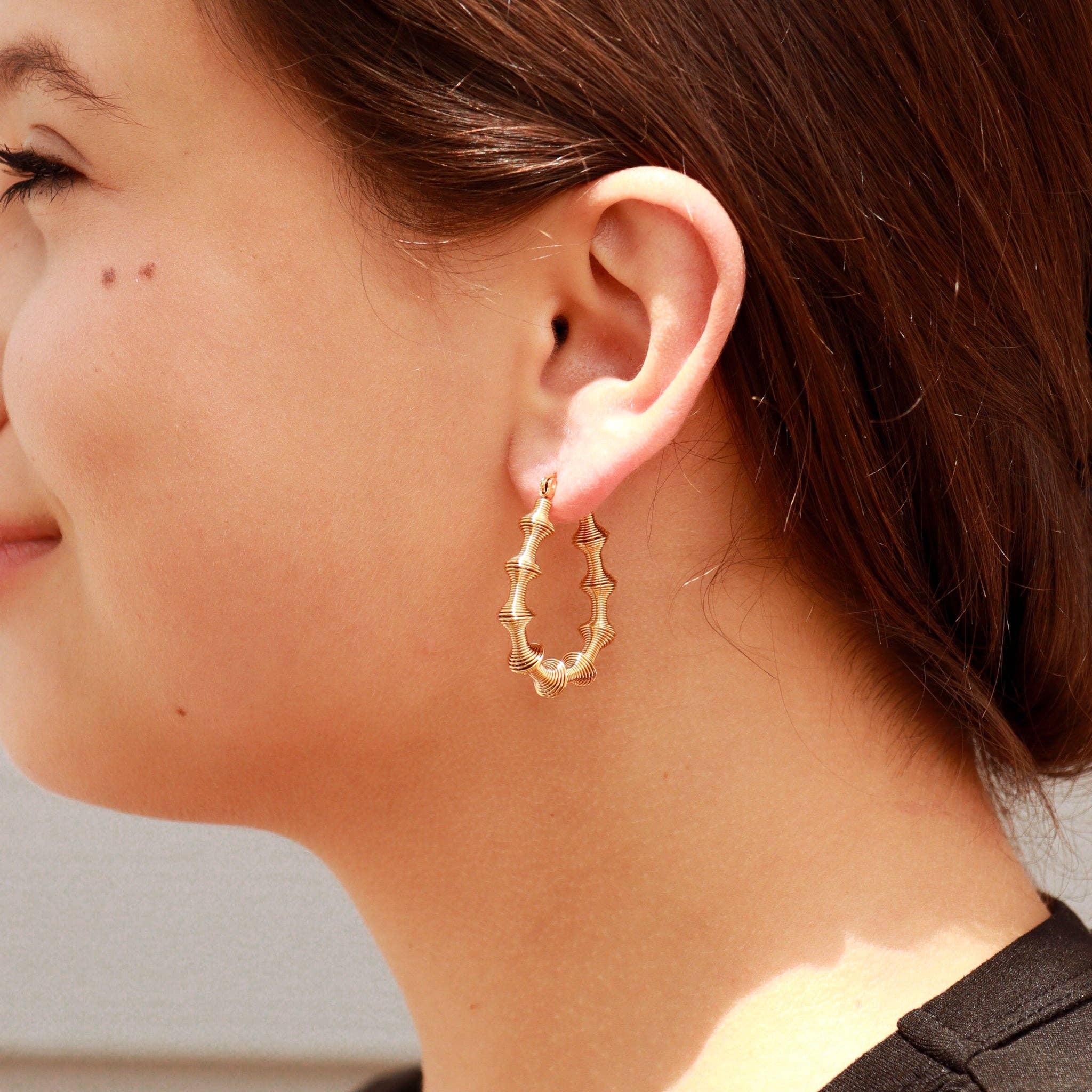 These simple, yet stunning earrings are versatile enough for any occasion. This lightweight set is incorporates a striking textural design that offers a refreshed look of nostalgic bamboo earring.